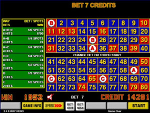 246 Way Keno is a keno variation with unique win combinations matching spots that correspond to lettered number selections.